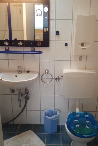 Im gemütlich eingerichteten Bad befindet sich eine Waschmaschine, die Ihnen ebenfalls kostenlos zur Verfügung steht.